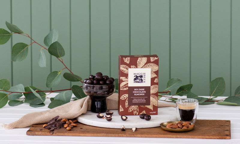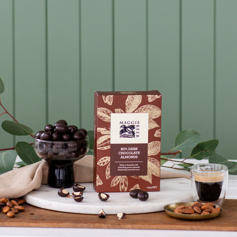 Enjoy premium-quality 80% dark chocolate encasing crunchy dry roasted Australian almonds.