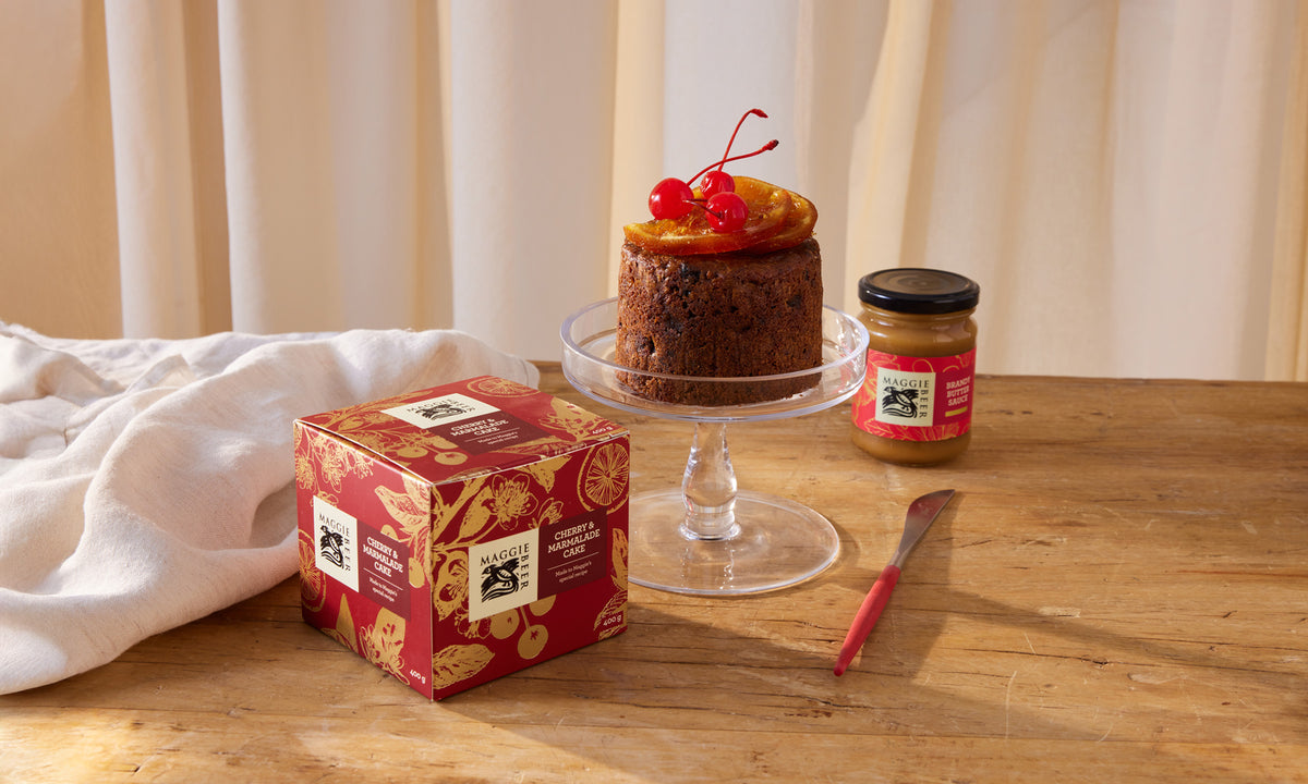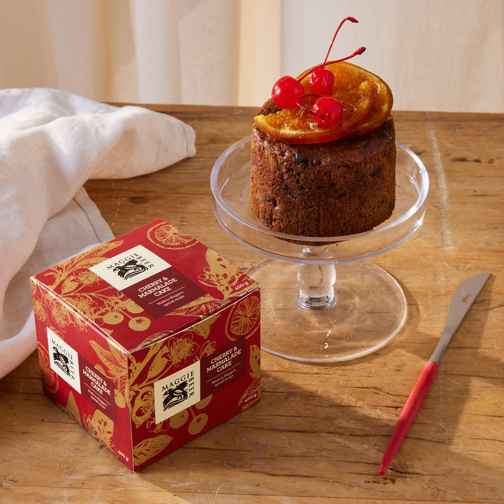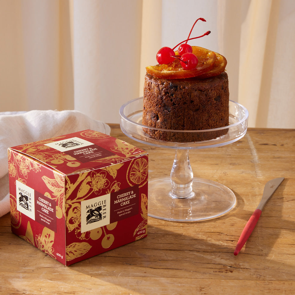 Enjoy Maggie's fruity, festive Christmas Cake, a dessert with a cherry and Seville marmalade twist.