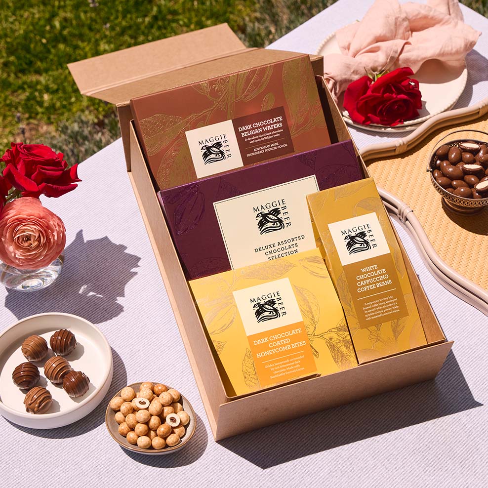 This decadent chocolate hamper features many of Australia's favourite Maggie Beer chocolates.
