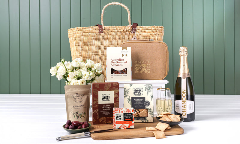 Spoil with Maggie's Large French Market Basket packed with Chandon, kitchenware and gourmet nibbles.