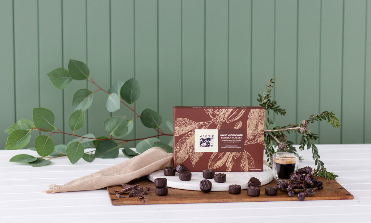 Enjoy Maggie's top indulgence and experience sharp, bitterly sweet chocolate encompassing a light wafer.