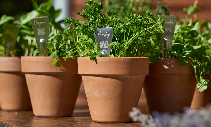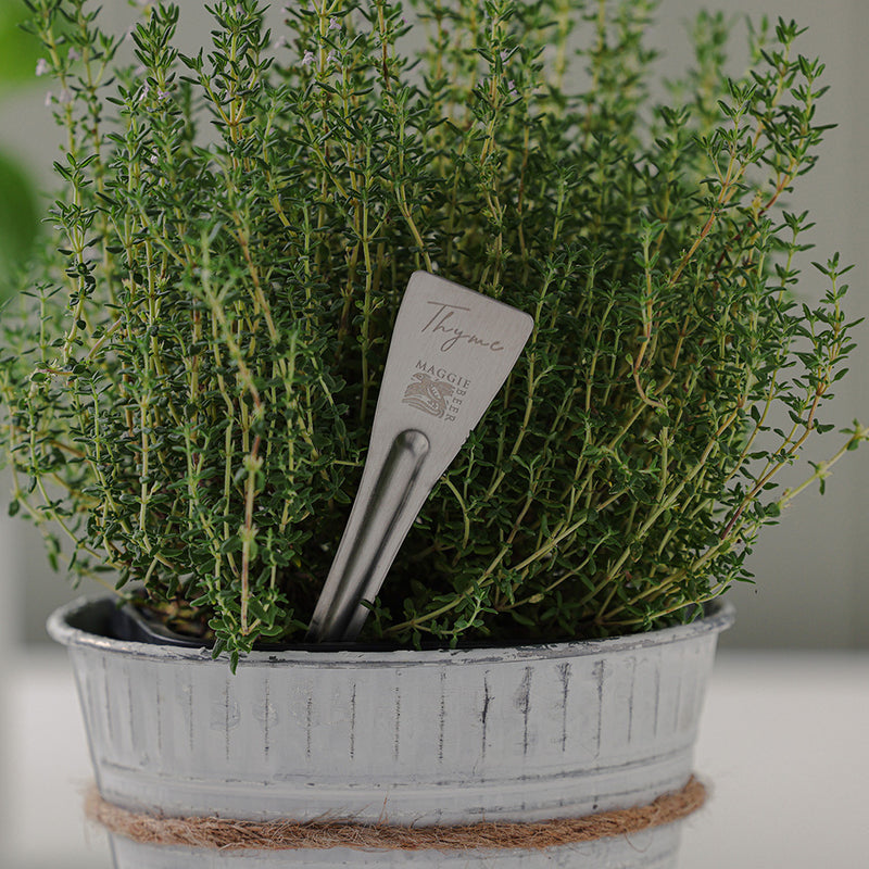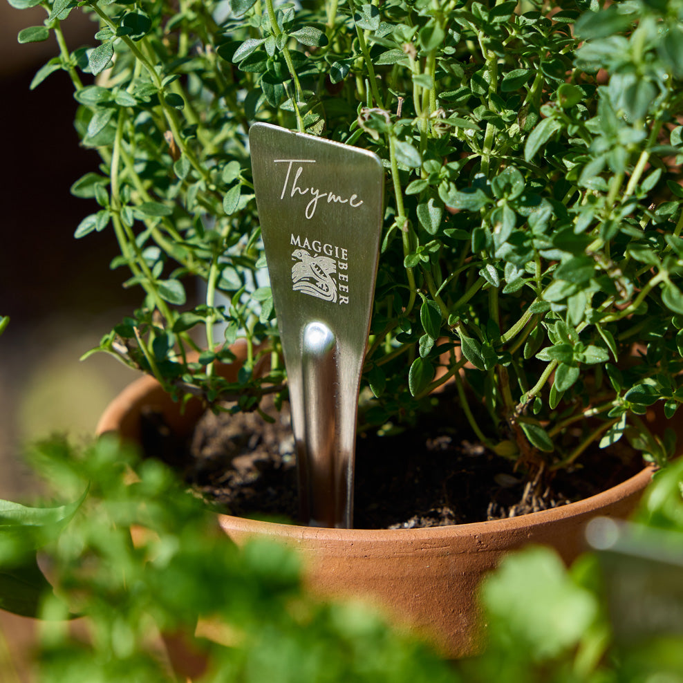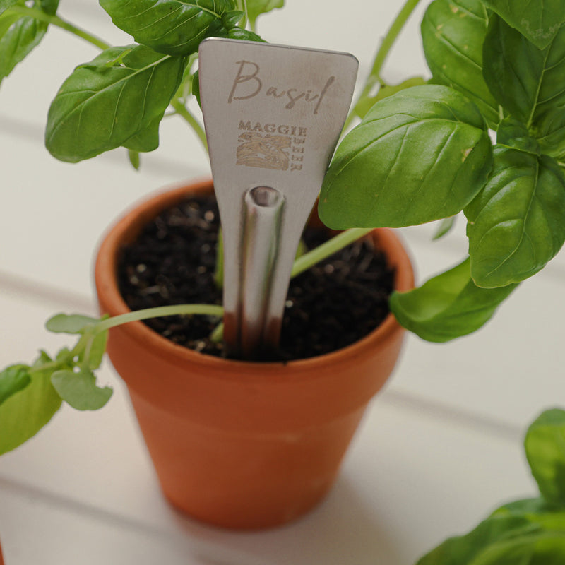 Plant a stunning stainless steel stake for basil, coriander, mint, oregano, parsley and thyme.