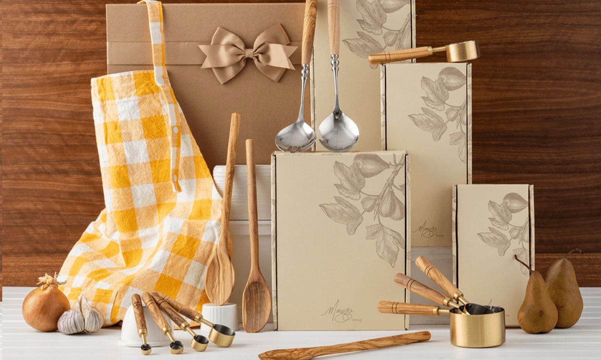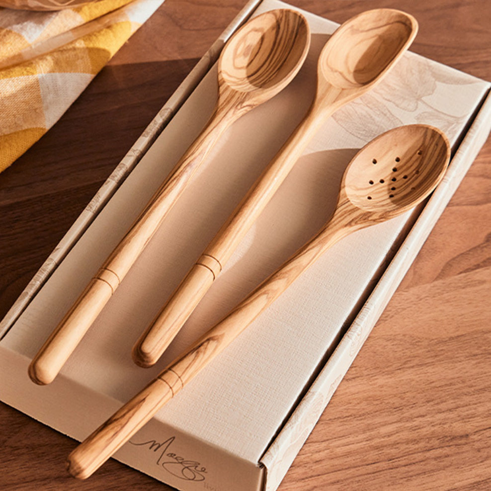 Stock up on staples of baking and cooking and appreciate the fine olive wood Maggie adores in the kitchen.