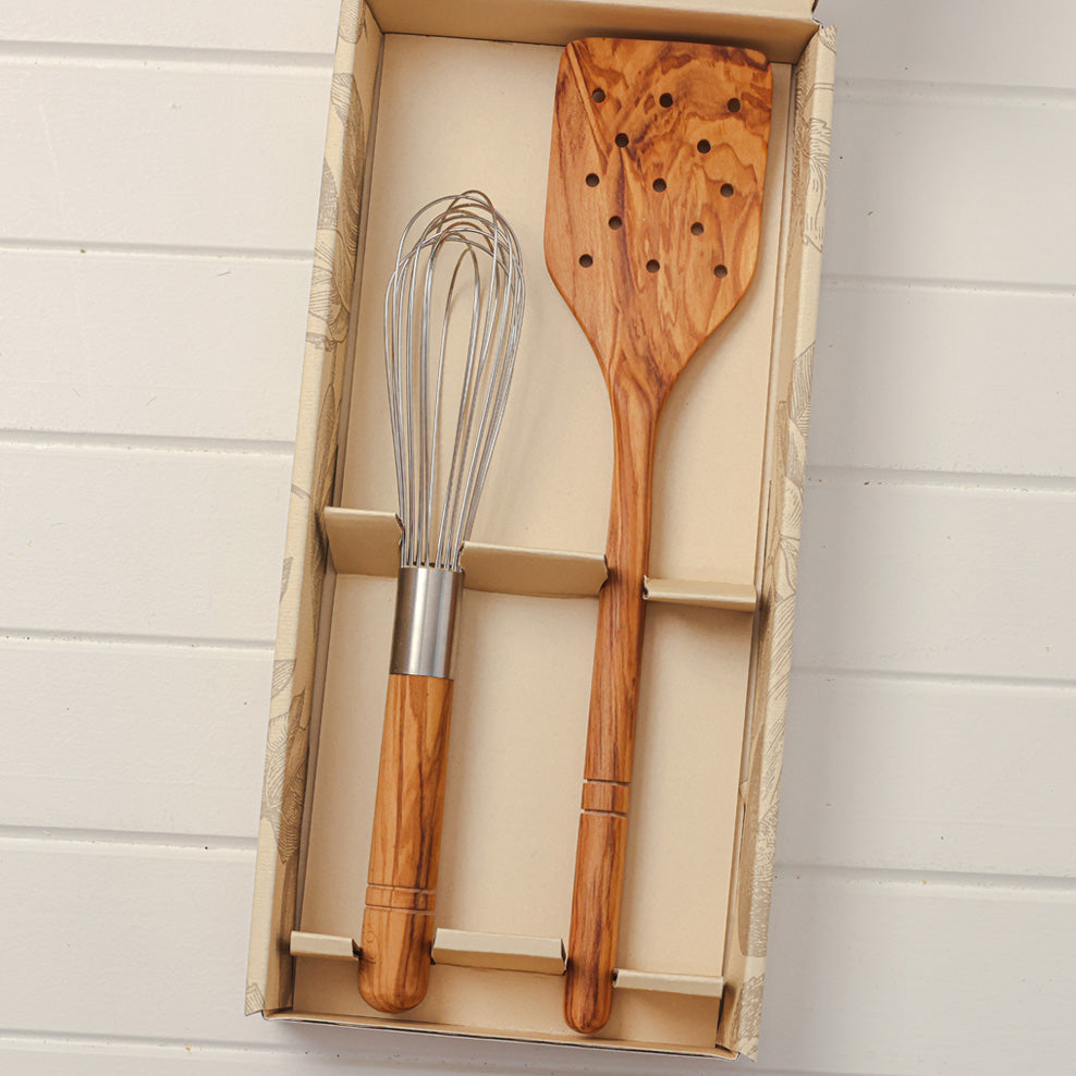 Cook and share a beautiful breakfast with the help of Maggie's Italian olive wood French whisk and turner.