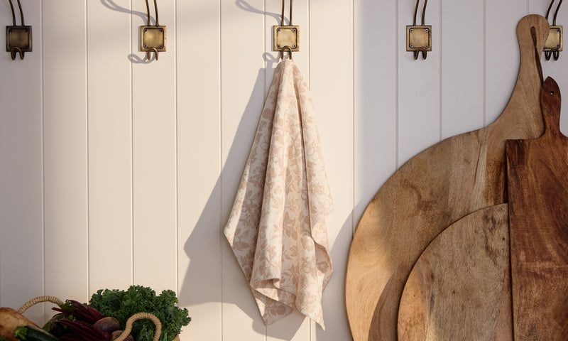 Marry form and fashion in the kitchen with this premium neutral tea towel from Maggie's range.