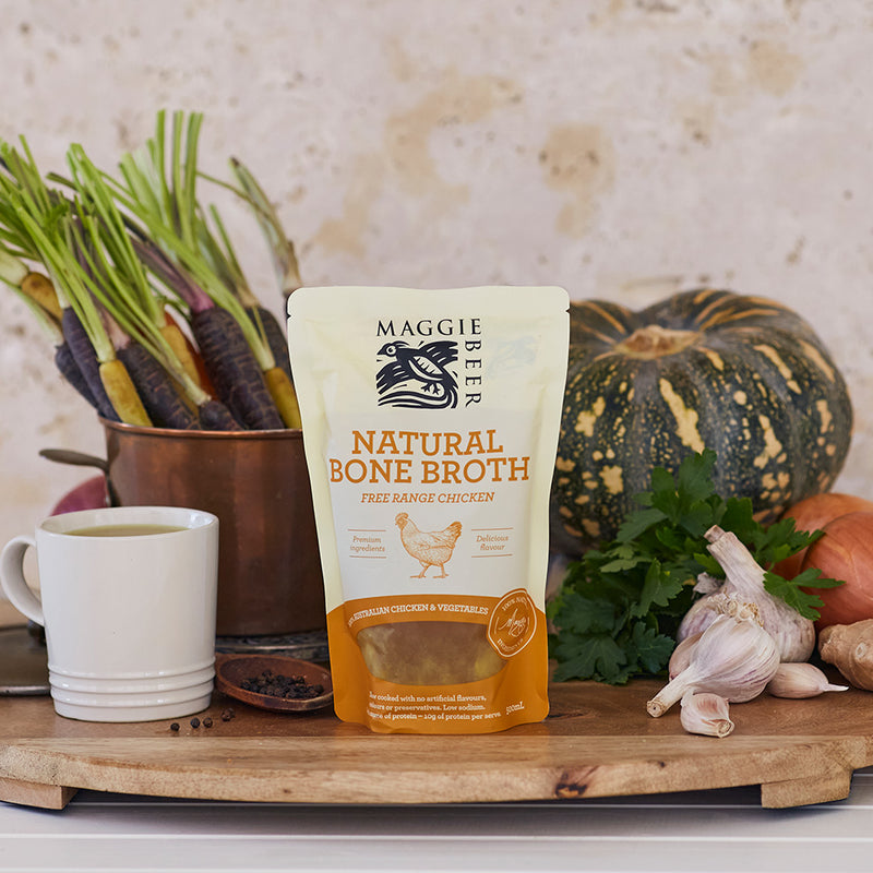 Savour a world of flavour with the slow-cooked premium vegetables and Australian chicken in this bone broth.
