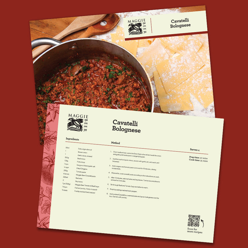 Nourish the family with Maggie's classic spaghetti bolognese made with her sugo and cavatelli pasta.