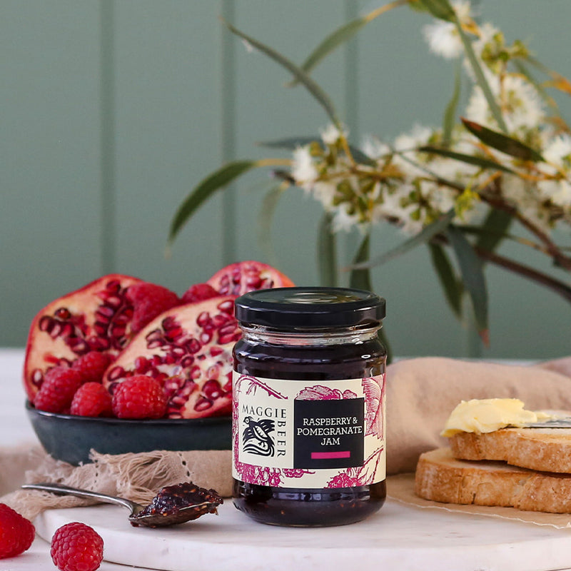 This jam is full of hand-selected raspberries and pomegranates, picked at their peak so the flavour shines.